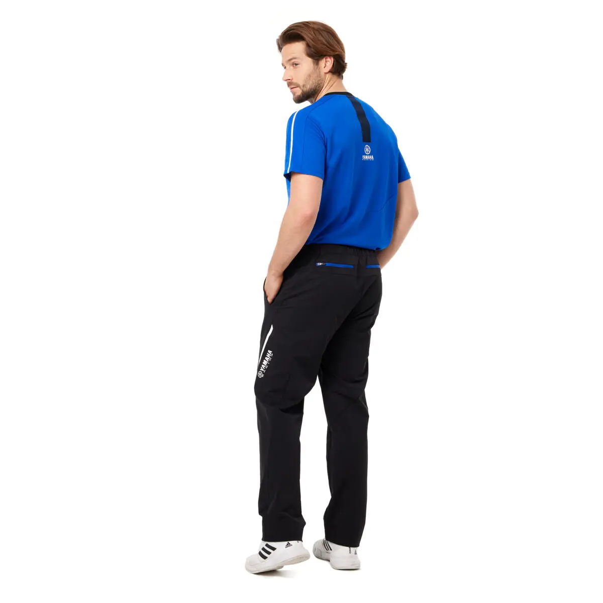 Polo Paddock Blue ad asciugatura rapida e di alta qualità, progettata e indossata dai membri del team Yamaha Racing. Elegante e comoda con zip sul davanti e colletto a contrasto. La polo ha i loghi bianchi Yamaha Racing stampati sul davanti e su una manica e presenta elementi di design in bianco e nero.