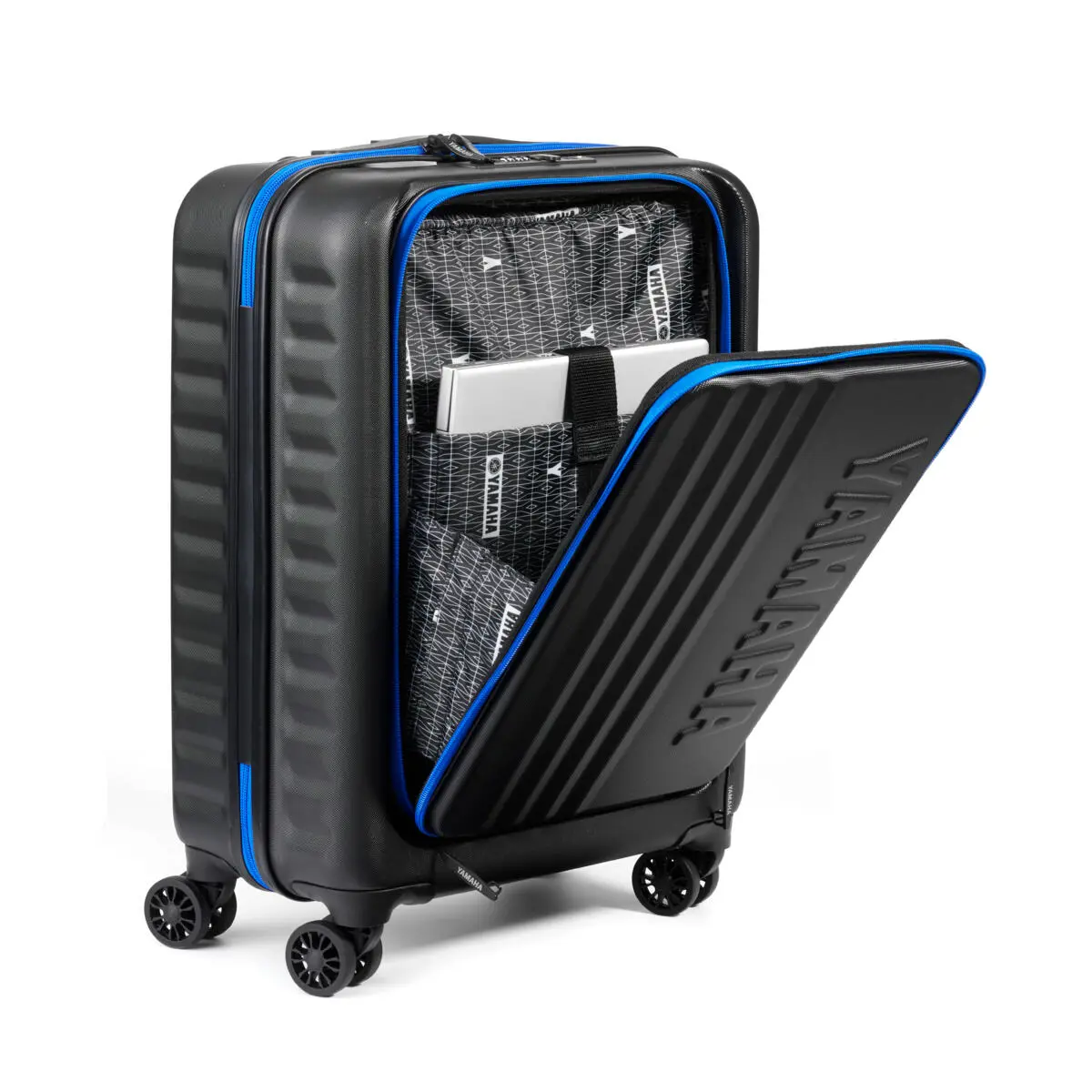 CARATTERISTICHE Valigia da cabina Yamaha, omologato per i bagagliai degli aerei, scomparto frontale speciale per laptop, dimensioni: 55 x 40 x 23 cm, materiale: 100% ABS, 2 serrature approvate dalla TSA, LaunchPad™: tasca esterna appositamente progettata per contenere e proteggere il tuo laptop, MicroShield™: calotta esterna in ABS di alta qualità,