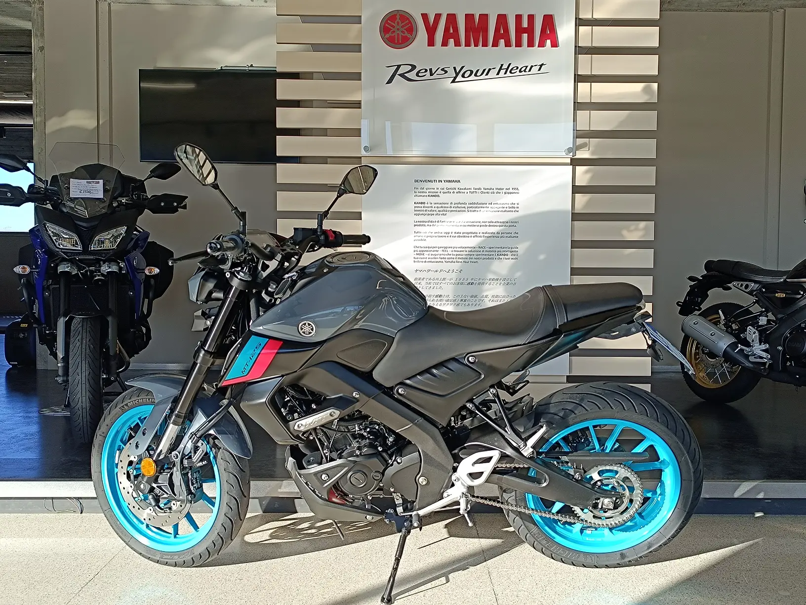 Bellissima MT-125 ABS Euro 5 immatricolata Maggio '22 unico proprietario, colorazione Cyan Storm, pochi Km. all'attivo. Monta p.targa alto Sport + frecce a leds + deflettori fumè cupolino. Ottime condizioni generali. Garanzia Ufficiale Yamaha sino a Maggio '25.