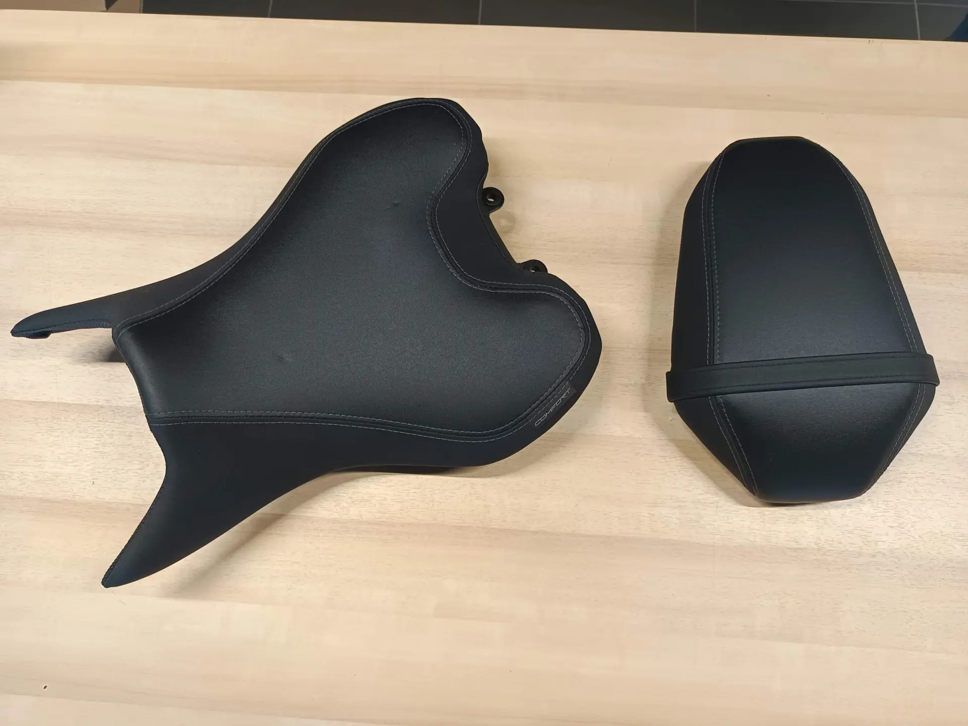 Coppia selle Pilota/Passeggero Confort per Yamaha MT-07 fino al MY 2024. Perfette, come nuove, solo 2 piccoli segni su quella del pilota dovuti ai ganci di quella passeggero appoggiata sopra, ma no rotture della pelle