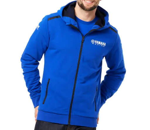 Comoda e calda felpa con cappuccio da uomo nel design Paddock Blue in poliestere e cotone. La felpa con cappuccio ha vari loghi sul davanti e sulle maniche ed è dotata di varie tasche per gli effetti personali.
