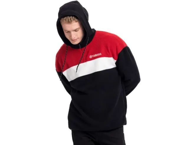 Realizzata in poliestere con una lussuosa finitura di pile a pelo lungo, la felpa con cappuccio REVS Special Edition unisex per adulti è progettata con un accattivante set di tre colori: nero, bianco e rosso. Realizzata per il massimo comfort, questa felpa con cappuccio e zip a tre quarti è dotata di un cappuccio fisso con cordino e tasche con zip per mantenersi al caldo e trasportare gli oggetti essenziali. I polsini elasticizzati offrono una vestibilità confortevole per tutte le taglie, con il logo Yamaha ricamato sulla parte davanti che le conferisce un look moderno ed elegante in stile REVS.