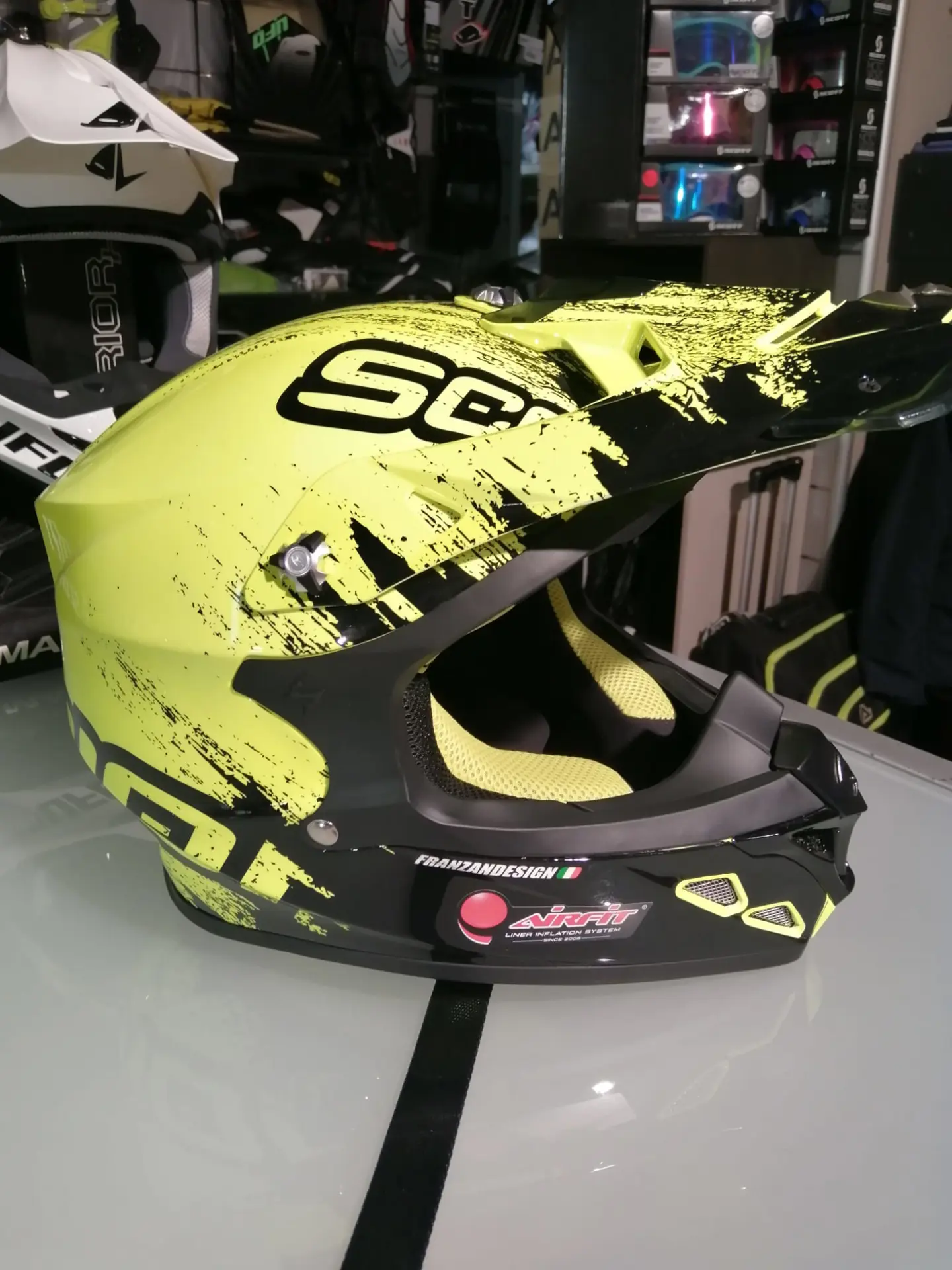 VX-21 possiede caratteristiche sviluppate su richieste provenienti direttamente dai Top Riders mondiali. Calotta a tre strati in TCT e calottina interna in EPS a doppia densità, che conferisce al casco una notevole leggerezza. VX-21 possiede le caratteristiche “storiche” di Scorpion. Sistema Airfit per una calzabilità ed un confort perfetto e un interno evoluto KwickWick III per una traspirazione ottimale e guanciali 3D sagomati per consentire una perfetta vestibilità e favorire una traspirazione mai provata prima. Il casco viene fornito con l’estensione del frontino che può essere montata a piacimento.