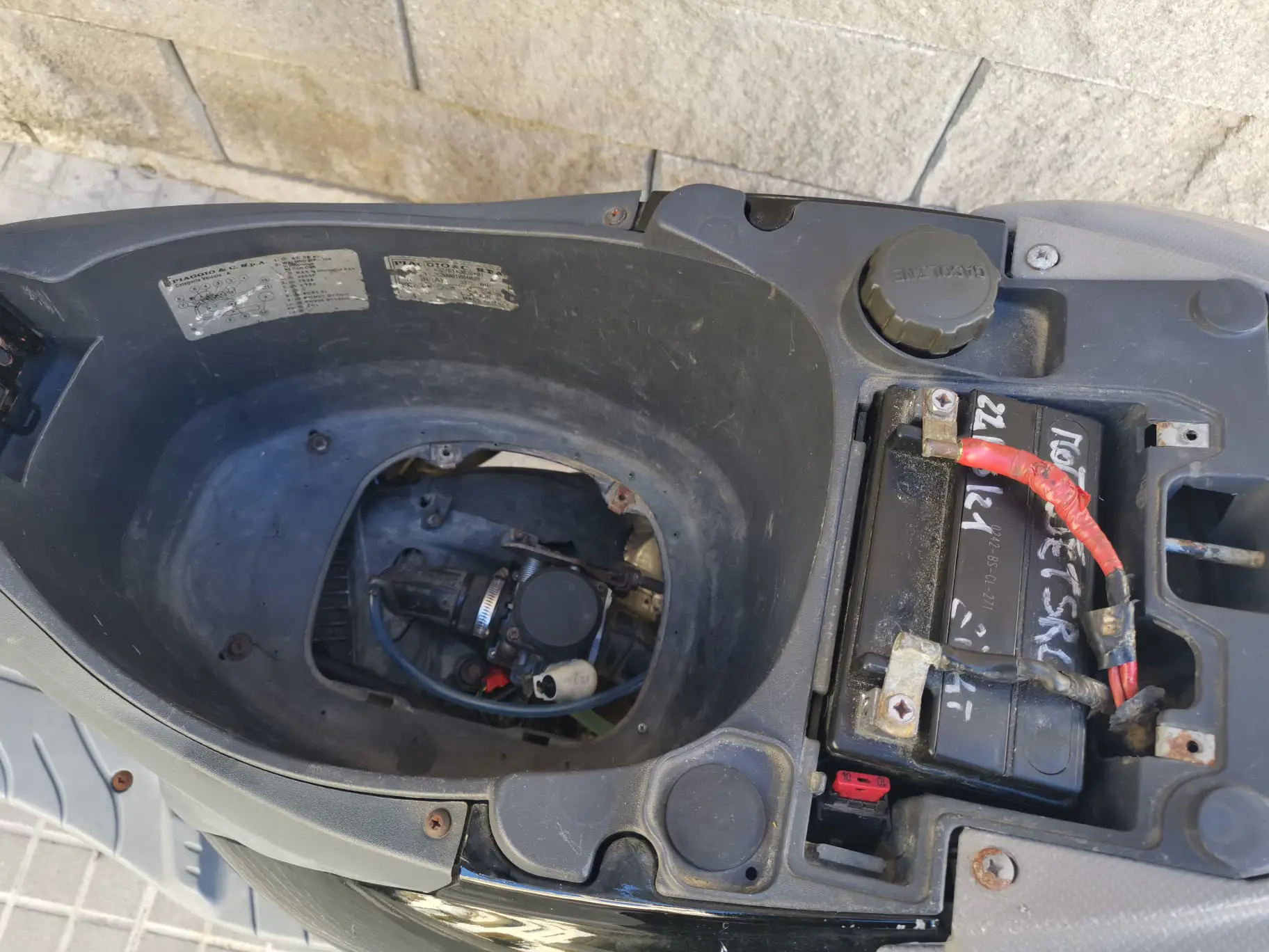 Lo scooter necessita della sostituzione o revisione carburatore, inoltre è sprovvisto del coperchio vano sotto sella, coperchio candela e coperchio batteria.