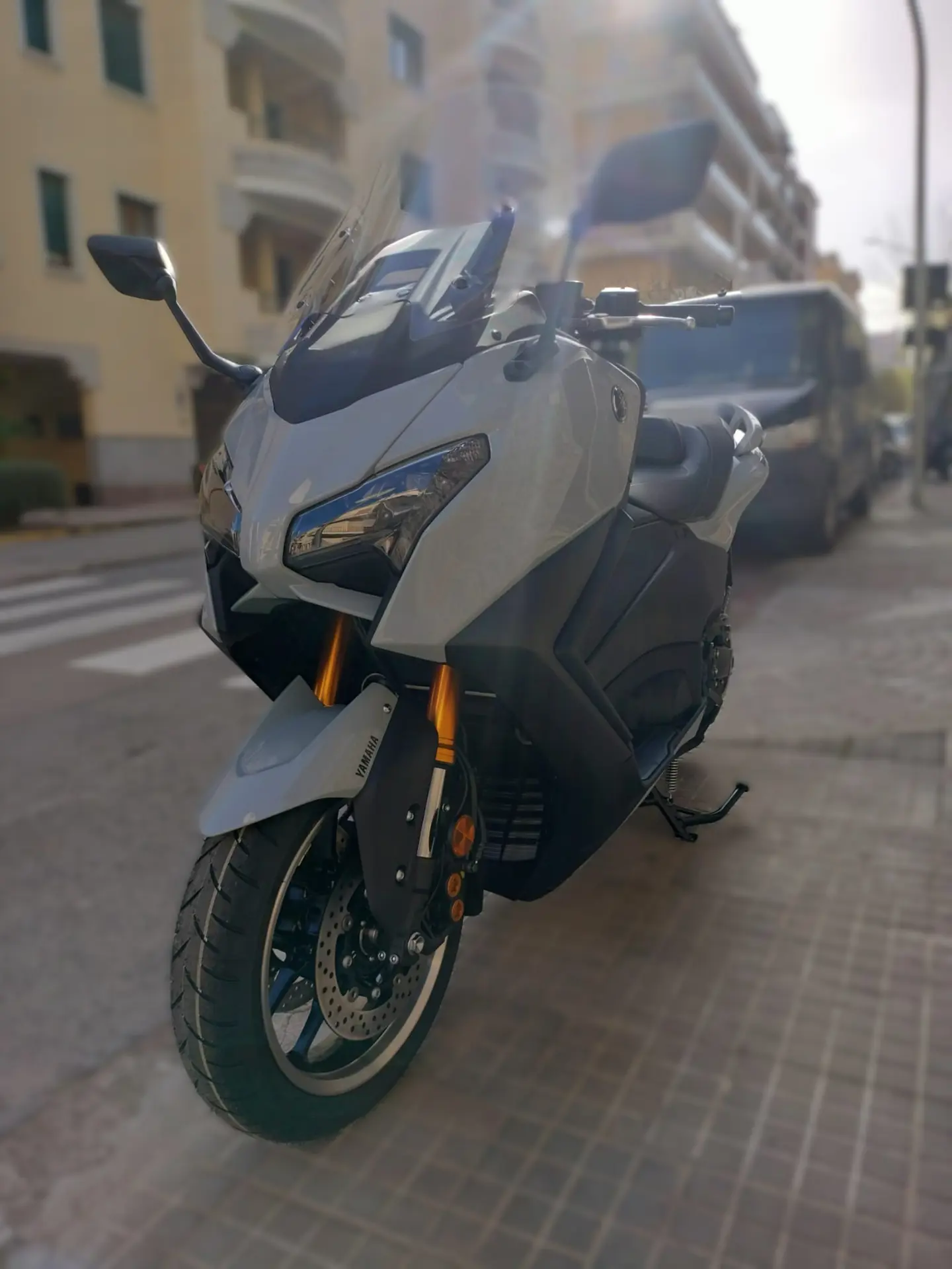Il potente motore EURO5 da 560 cc e la raffinata trasmissione automatica rendono questo Scooter Sportivo Yamaha più veloce e fluido. Le telaio in alluminio di tipo motociclistico e le sospensioni regolabili garantiscono una guida di precisione. Per il massimo comfort, il TMAX Tech MAX è dotato di un'elegante sella e di manopole riscaldate e di un parabrezza regolabile elettronicamente. Per garantire il massimo controllo, il TMAX Tech MAX ie dotato dei migliori sistemi elettronici di assistenza al pilota della categoria, tra cui il nuovo Brake Control, oltre al Cruise Control, al controllo della trazione e alla modalità D-MODE a 2 livelli. Il cruscotto da 7" connesso dispone di un sistema di navigazione Garmin* per offrirti i percorsi migliori per gli spostamenti in città, le tue avventure di un giorno e i tuoi tour.