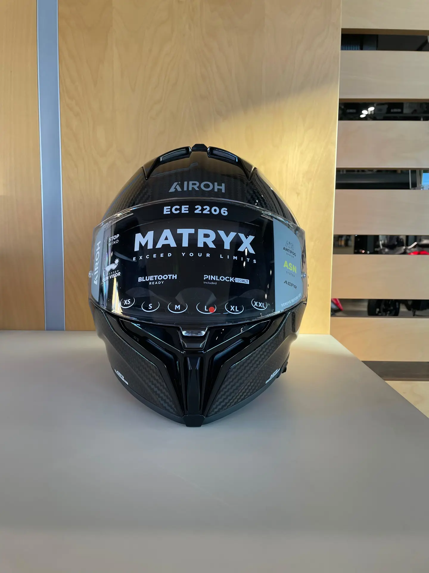 Deciso, aggressivo, sicuro di sé. Il nuovo casco Matryx di Airoh è il compagno di viaggio ideale per affrontare qualsiasi avventura in moto, anche la più impegnativa. Il suo design viene enfatizzato dalla sofisticata versione in carbonio, disponibile su entrambe le taglie della calotta. Il suo sistema di ventilazione all’avanguardia, studiato all’interno della galleria del vento, esalta il piacere di guida e, grazie all’ampia visiera dotata dell’innovativo A3S (Airoh Automatic AntiFog System), combinata con il sistema di blocco centrale, sarà possibile avere il massimo controllo su ogni dettaglio, senza mai rinunciare alla sicurezza. Scegli la tua strada, supera i tuoi limiti, affronta con coraggio il viaggio più bello della tua vita.