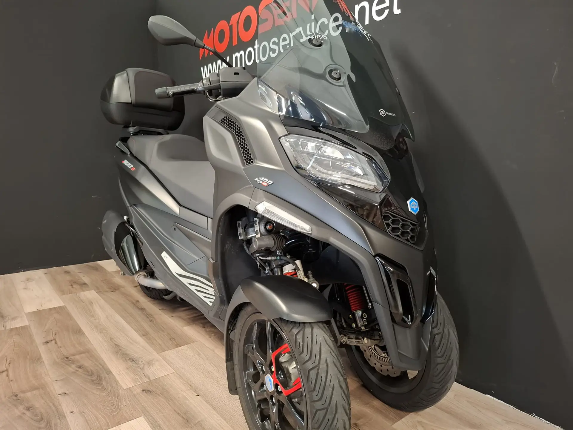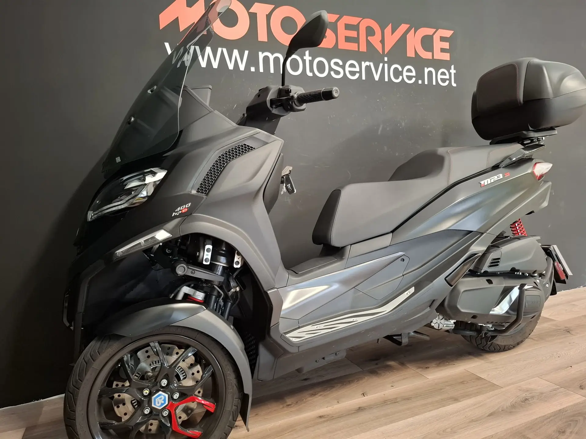 Accessoriata con: SCHERMO ALTO e BAULETTO POSTERIORE.