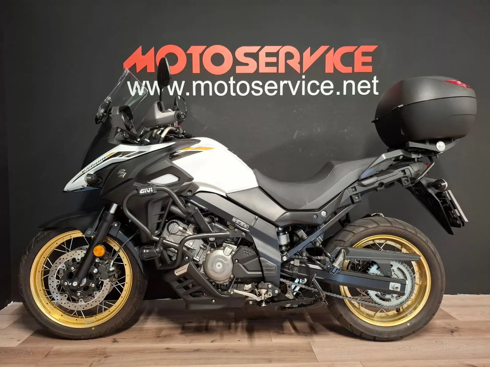 Accessoriata con: BAULETTO POSTERIORE, PARAMOTORE e FARETTI SUPPLEMENTARI.