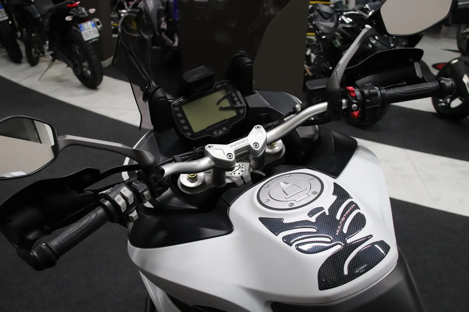 Moto in ottime condizioni, completa dei seguenti accessori: tris valigie originali Ducati + terminale di scarico Termignoni + tubolare para-motore + faretti supplementari + cupolino fumè.