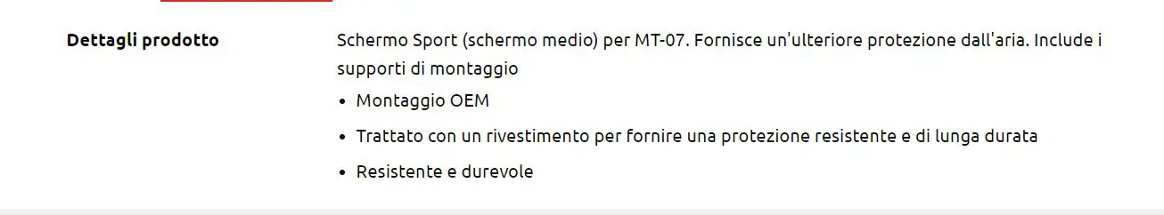 Accessori: Schermo sport per Yamaha MT-07 - MY2018-2020