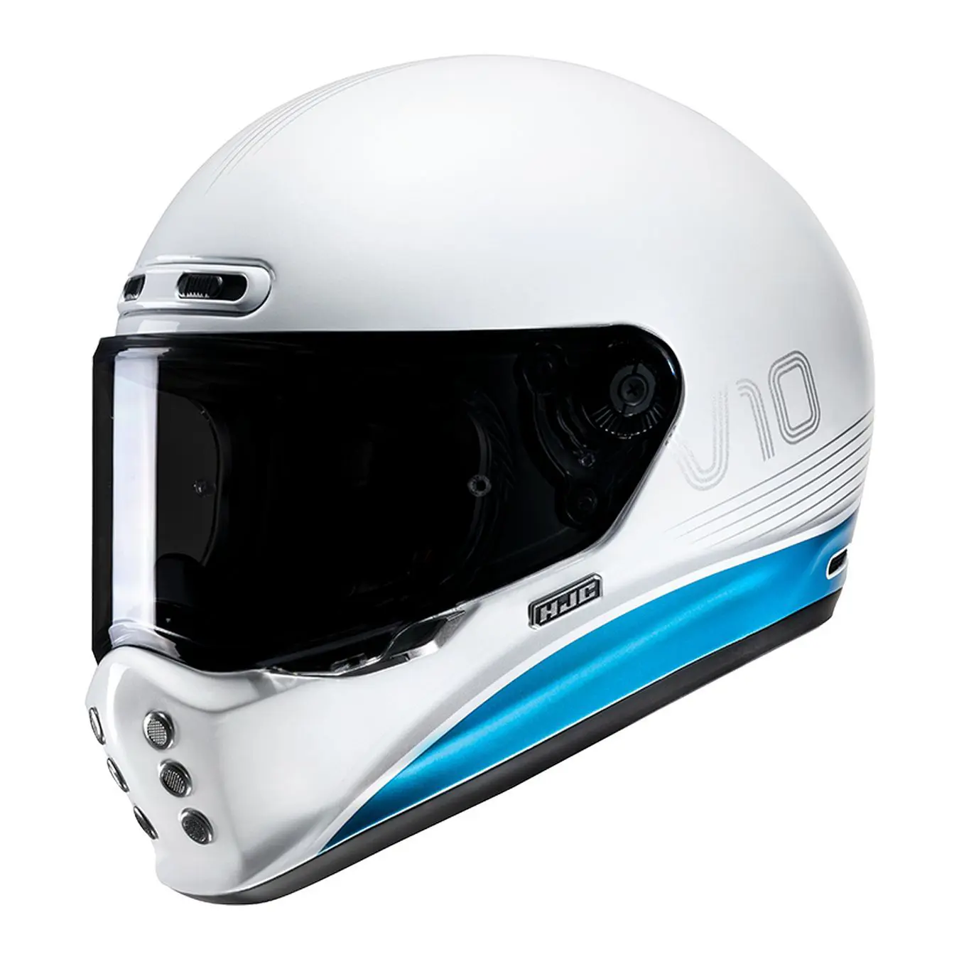 Il V10 va oltre il look vintage con caratteristiche new age con calotta leggera in fibra di vetro, prestazioni aerodinamiche, linguette di emergenza per una maggiore sicurezza, interni staccabili e lavabili e bulloni facili per una rapida sostituzione della visiera. Questo casco è compatibile Bluetooth con Smart HJC.