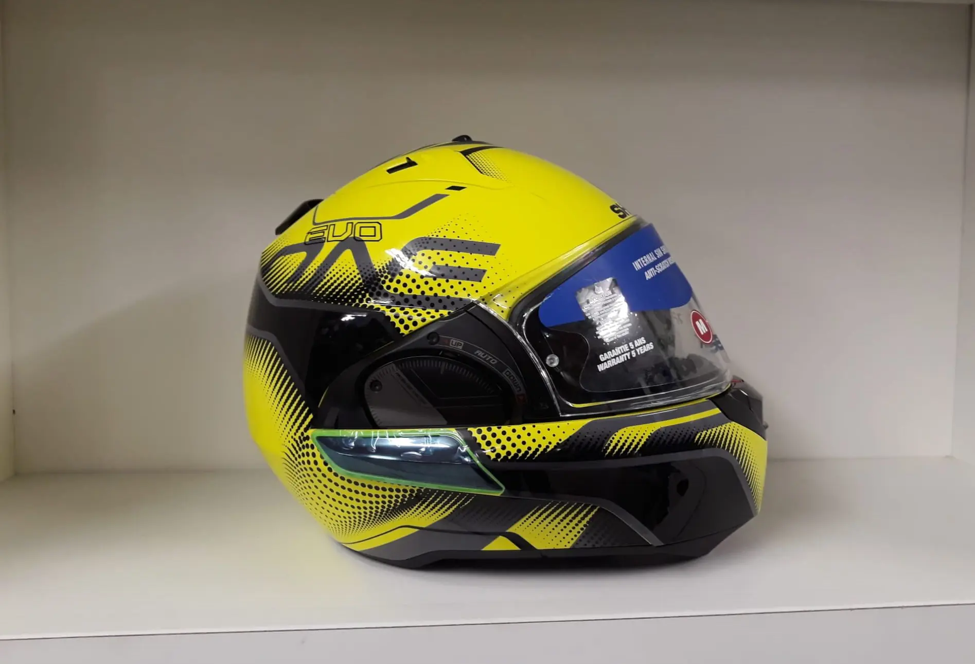 - Il sistema brevettato "Auto-up / Auto-down" consente di sollevare automaticamente la visiera sollevando o abbassando la protezione del mento