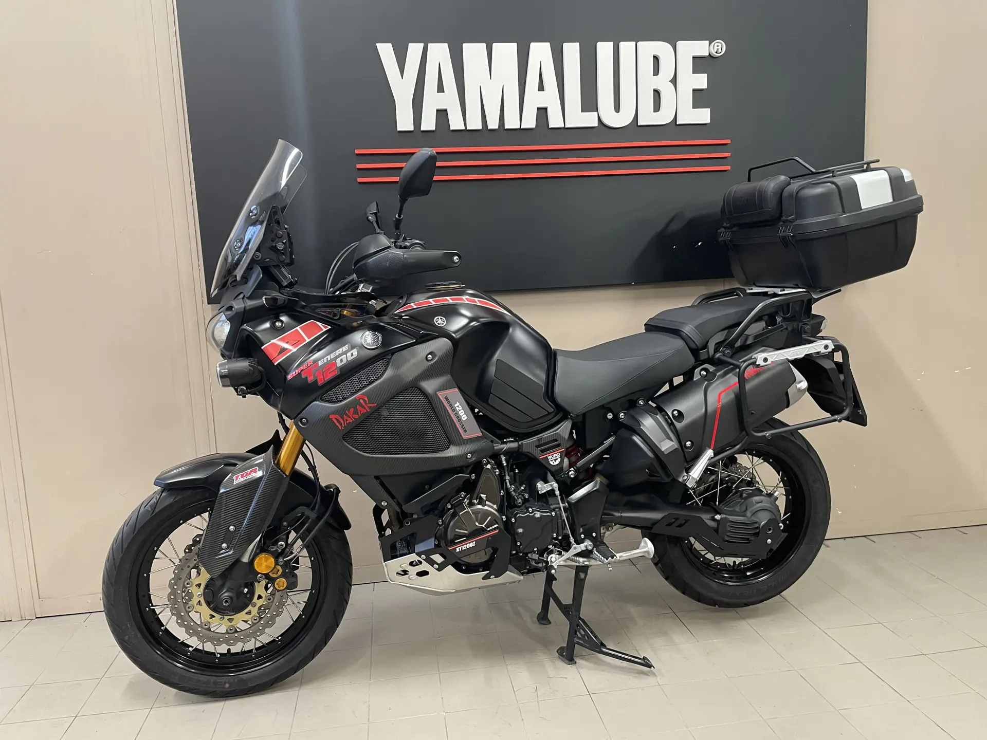 Accessori: Tris valige GIVI + box porta utensili, deflettori aria cupolino, Faretti supplementari + di serie (versione World Crosser) Protezione cardano, Paracoppa, paratie parafango in carbonio, fiancate laterali in carbonio, Decalcomanie dedicate, cavalletto centrale.