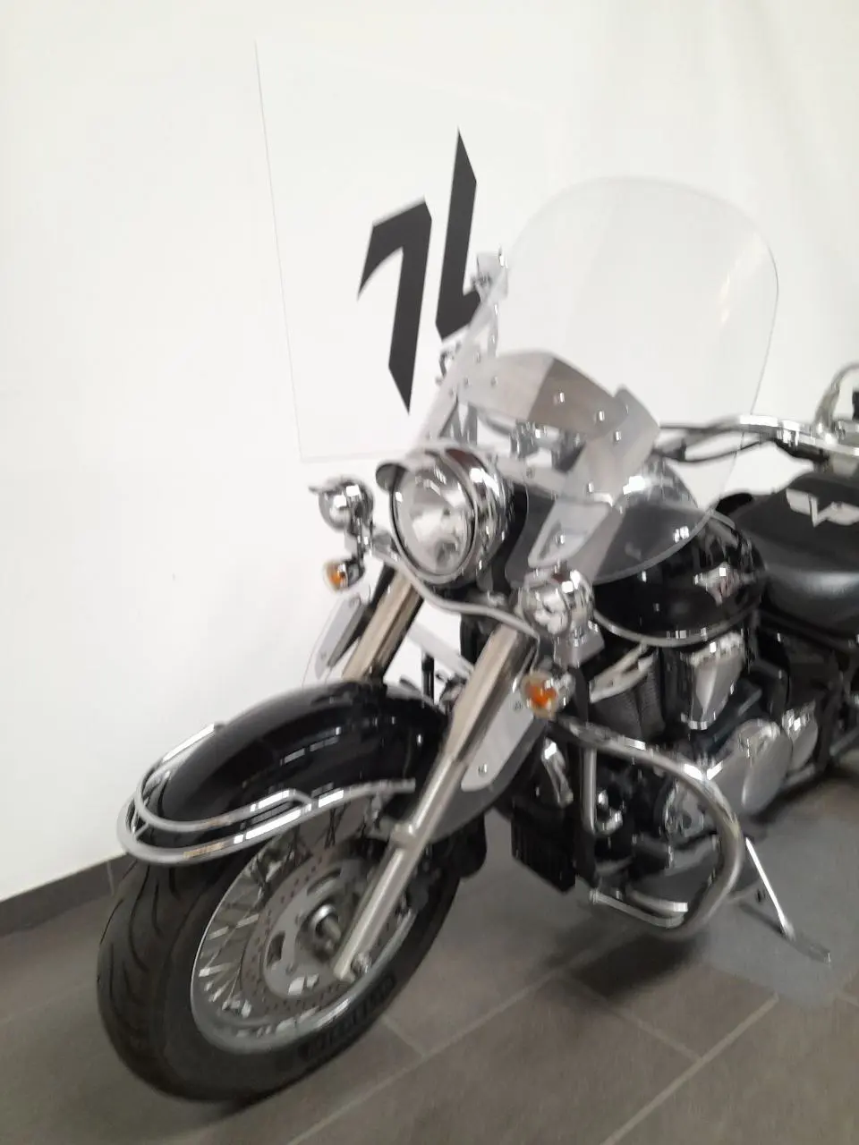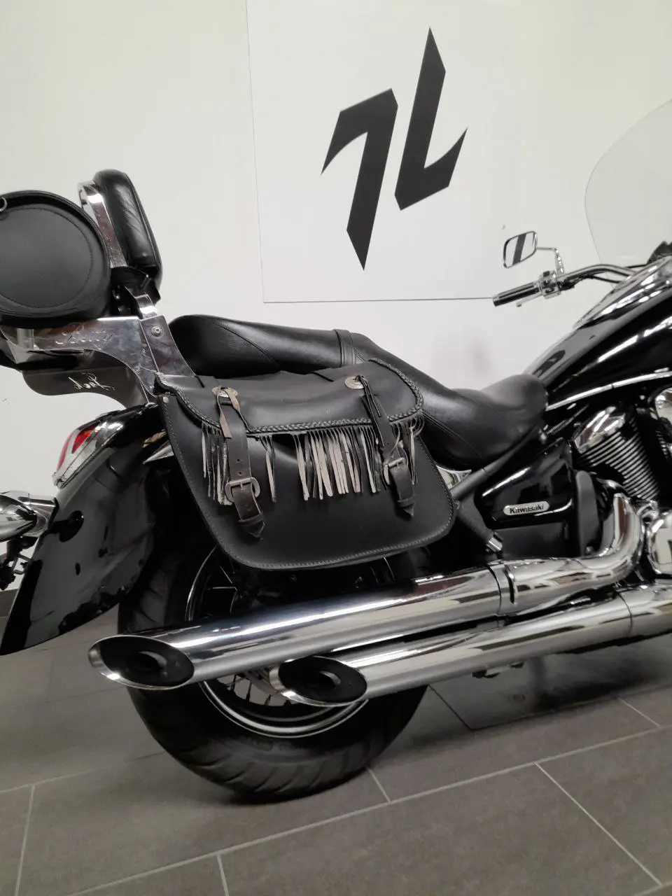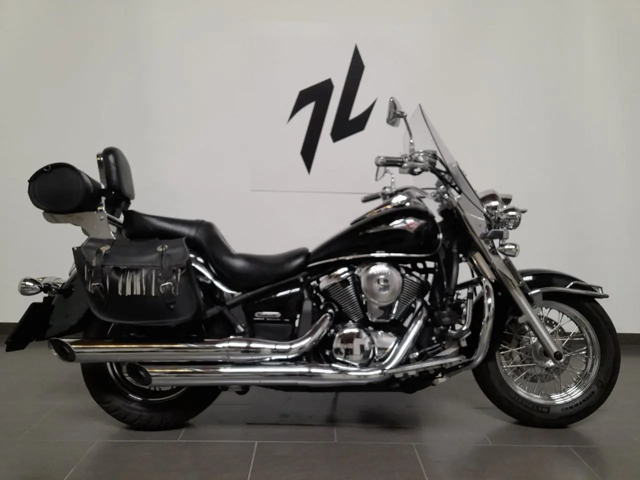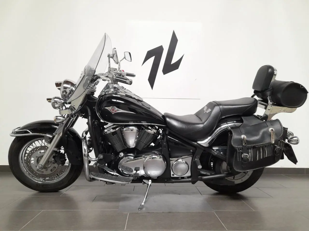 Accessoriato con borse laterali + rullo in pelle, sissybar, fari supplementari, visiere fari, parabrezza con estensioni.