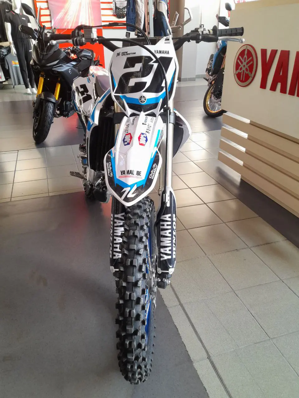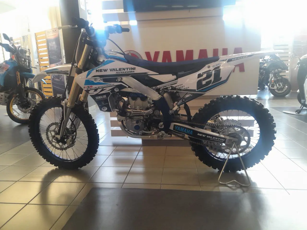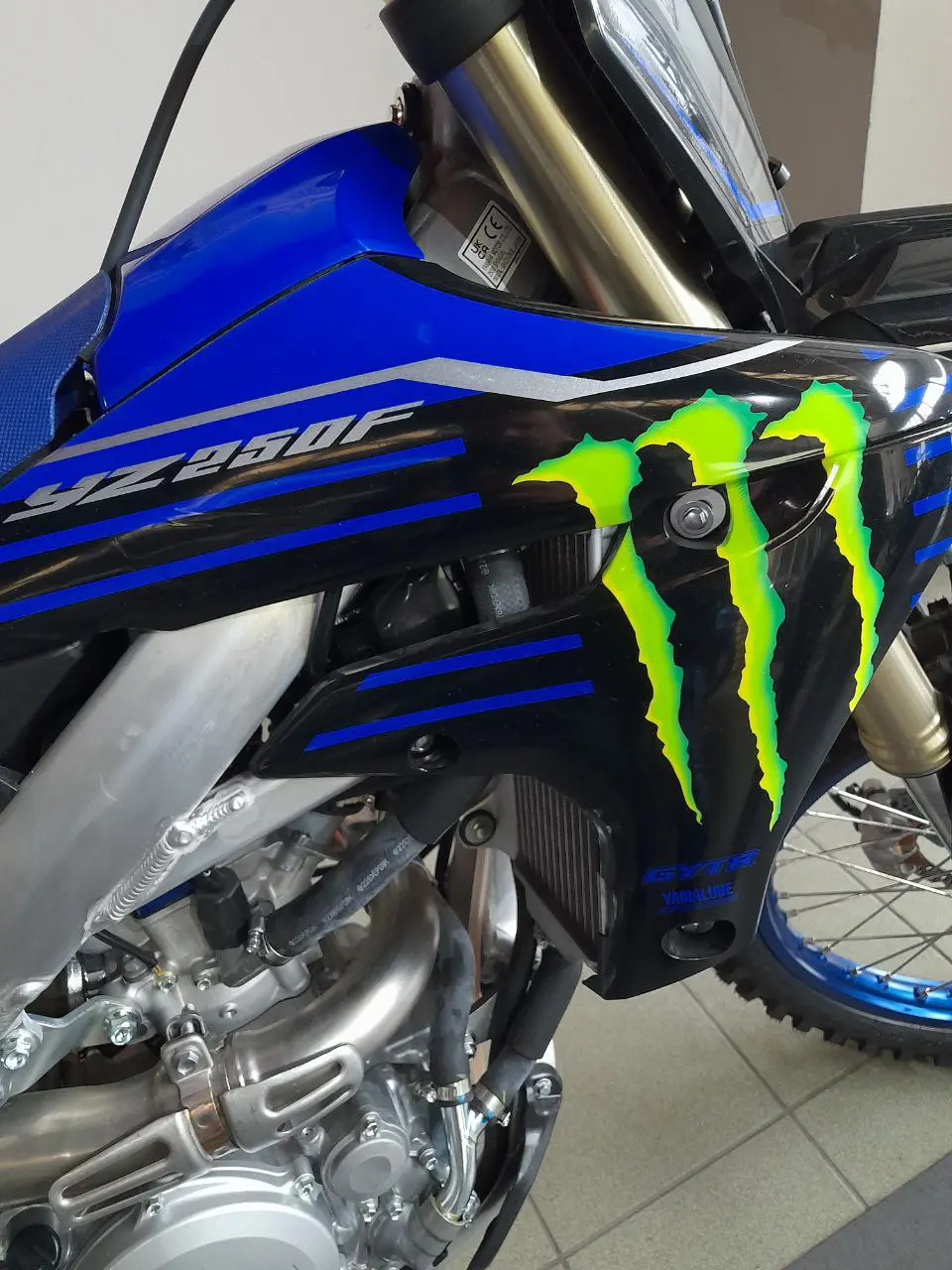 VERSIONE MONSTER ENERGY (PLASTICHE ORIGINALI SMONTATE SUBITO E ALLESTITA PER ESPOSIZIONE CON GRAFICA BIANCA AZZURRA CON LOGHI CONCESSIONARIO)