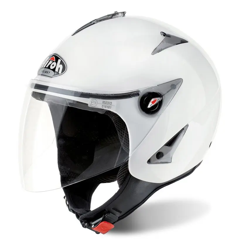Calotta esterna in due misure in materiale termoplastico rifinita esternamente con vernice e finitura UV. Ventilazione ricavata con presa superiore frontale regolabile e con estrattori posteriori e laterali. Visiera trasparente anti graffio. Interni antiallergici con guanciali removibili e lavabili e calotta in materiale mesh altamente traspirante. Cinturino con chiusura micrometrica ed anello antifurto. Peso 900gr.