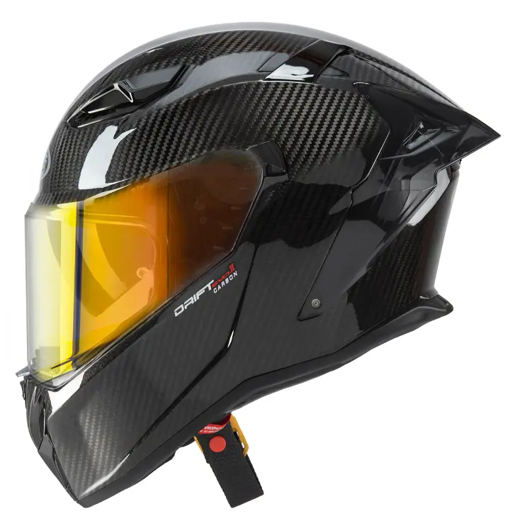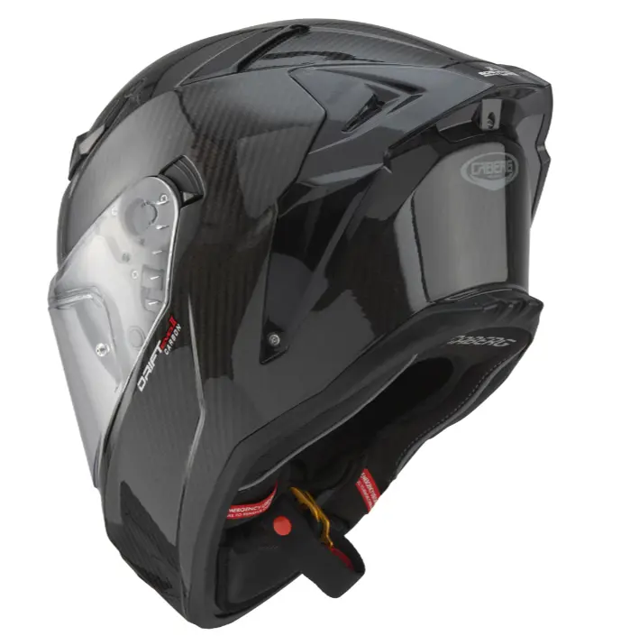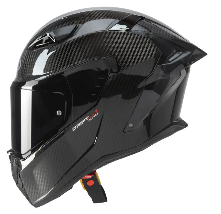 Questo casco deriva infatti dall’esperienza del reparto corse e dei piloti dell’azienda bergamasca, che indossano in diverse competizioni versioni grafiche del tutto originali del DRIFT EVO. La calotta, prodotta in due misure e abbinata a interni dallo spirito innovativo, è in grado di offrire un perfetto equilibrio tra comfort e ingombro. Lo spoiler posteriore conferisce un design aggressivo, migliora l’aerodinamica alle velocità più alte e riduce le turbolenze e la rumorosità. Gli interni adottano inoltre un guanciale di nuova generazione, che conferisce una calzata ancora più avvolgente e precisa; su richiesta gli interni possono essere sostituiti con quelli della taglia superiore o inferiore, consentendo così una personalizzazione perfetta. DRIFT EVO è dotato di un meccanismo visiera a sgancio rapido che regola automaticamente la posizione della visiera per una perfetta aderenza con la bordatura della finestra. Grazie al doppio movimento a molle del meccanismo visiera non sarà più necessaria la regolazione manuale dello stesso per evitare infiltrazioni di acqua o di aria tra visiera e bordatura. Sul lato sinistro del meccanismo visiera è posizionata una leva che permette di bloccarla ad una distanza dalla bordatura di circa 0.5cm per evitare o eliminare la condensa che viene assorbita in modo efficace dal vento durante la circolazione; permette inoltre di avere un flusso d’aria sul viso direzionato in modo da non dare fastidio nemmeno alle velocità più alte. La leva di blocco esclude la possibilità che la visiera si apra durante la marcia o durante una caduta. DRIFT EVO è dotato di visiera antigraffio con lente Pinlock Max Vision per evitare l’appannamento; la presenza del visierino parasole DVT (Double Visor Tech), facilmente manovrabile anche con i guanti attraverso una leva laterale, permette di guidare sempre nelle migliori condizioni di luce. La presa d’aria posizionata sulla mentoniera convoglia l’aria sulla superfice interna della visiera evitando la formazione di condensa. Le prese d’aria superiori, attraverso un avanzato sistema di canalizzazioni nella calotta in polistirolo, garantiscono un’ottima ventilazione, grazie anche all’estrattore posteriore che permette il deflusso dell’aria calda e viziata.
