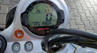 Moto in condizioni eccellenti sia meccaniche che estetiche, unico proprietario, regolare manutenzione. Completa di borsa laterale in tela e baule posteriore.