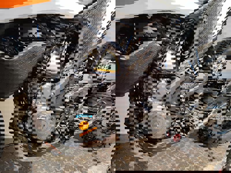 La moto monta scarico Akrpovic, bauletto in alluminio GIVI, kit grafiche + cupolino.