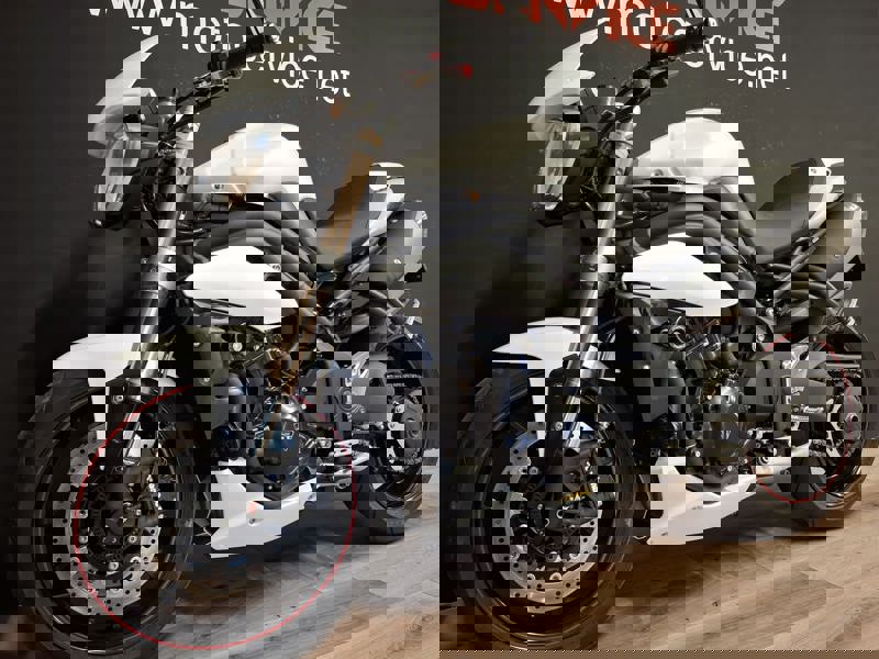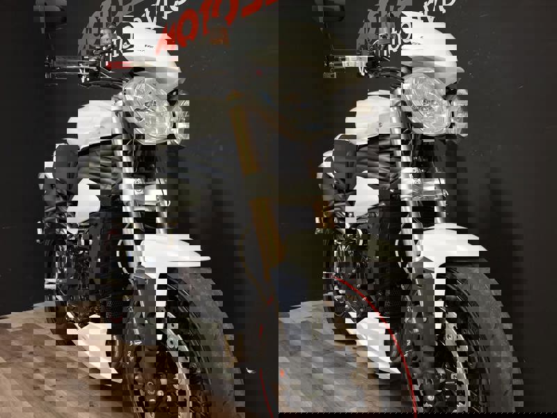 Accessoriata con: MONOPOSTO, PORTA TARGA CORTO, FRECCE LED, LEVE ANTERIORI, TAMPONI PARA TELAIO, PUNTALE SPORTIVO e SPECCHI BAR-END.