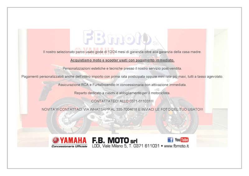 Se hai una moto in permuta inviaci le foto e la descrizione della tua moto usata al servizio Whatsapp 3357004618, ti invieremo il nostro miglior preventivo. Pagamenti personalizzabili anche dell'intero importo con prima rata posticipata oppure canone di guida con valore futuro, tutti a tasso agevolato. Assicurazione RCA, Furto/Incendio ed altre garanzie in concessionaria con attivazione immediata. Possibilita' di trasporto in tutta Italia, isole comprese, con consegna al domicilio. Personalizzazioni estetiche e tecniche presso il nostro servizio post-vendita. Reparto dedicato a caschi e abbigliamento per il motociclista. Acquistiamo moto e scooter usati con pagamento immediato e pratiche burocratiche a nostro carico. Le foto sono tutte originali fatte nel nostro show-room e le moto sono tutte di nostra proprieta' in pronta consegna. La moto si trova nella sede di Lodi Viale Milano,5. Responsabile Vendite: Daniele 0371-611031 / info@fbmoto.it