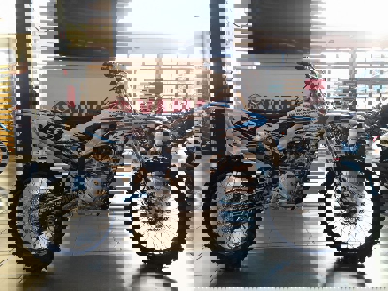 VERSIONE MONSTER ENERGY (PLASTICHE ORIGINALI SMONTATE SUBITO E ALLESTITA PER ESPOSIZIONE CON GRAFICA BIANCA AZZURRA CON LOGHI CONCESSIONARIO)